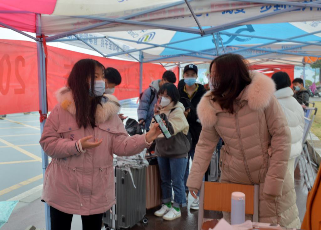 学校门口,学工处、后勤处、校医院、辅导员们在报到点热情迎接返校学生,他们严格按照学校疫情防控要求,提醒学生戴好口罩,为学生逐一测量体温、消毒、细致查验每位学生的平安入校通行码,认真登记返校学生信息。后勤处安排了校园通勤车帮助同学们运送行李。