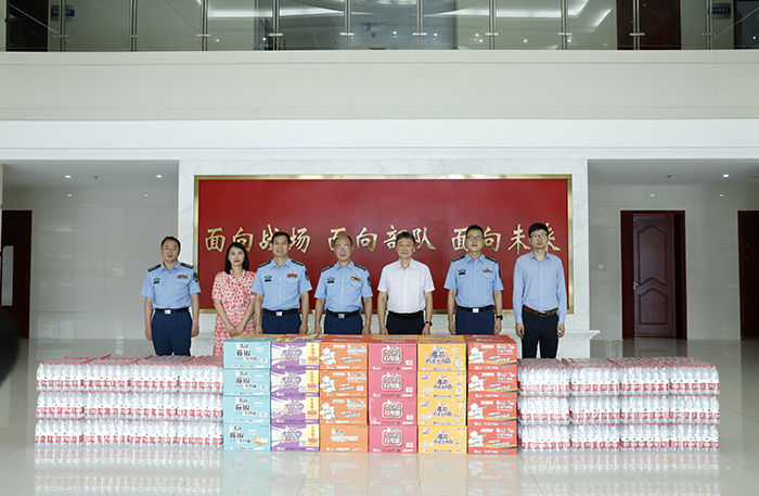 王志华代表学校向空军工程大学航空机务士官学校赠送节日慰问物资,转达学校师生对空军工程大学航空机务士官学校全体官兵的美好祝福,对部队在我校国防教育、新生军训等方面给予的大力支持深表感谢。他介绍了学校发展、取得成绩和目前学校重点工作的开展情况,希望双方继续加强交流合作,积极开展多种形式的拥军优属活动,共同谱写新时代军民融合发展新篇章。