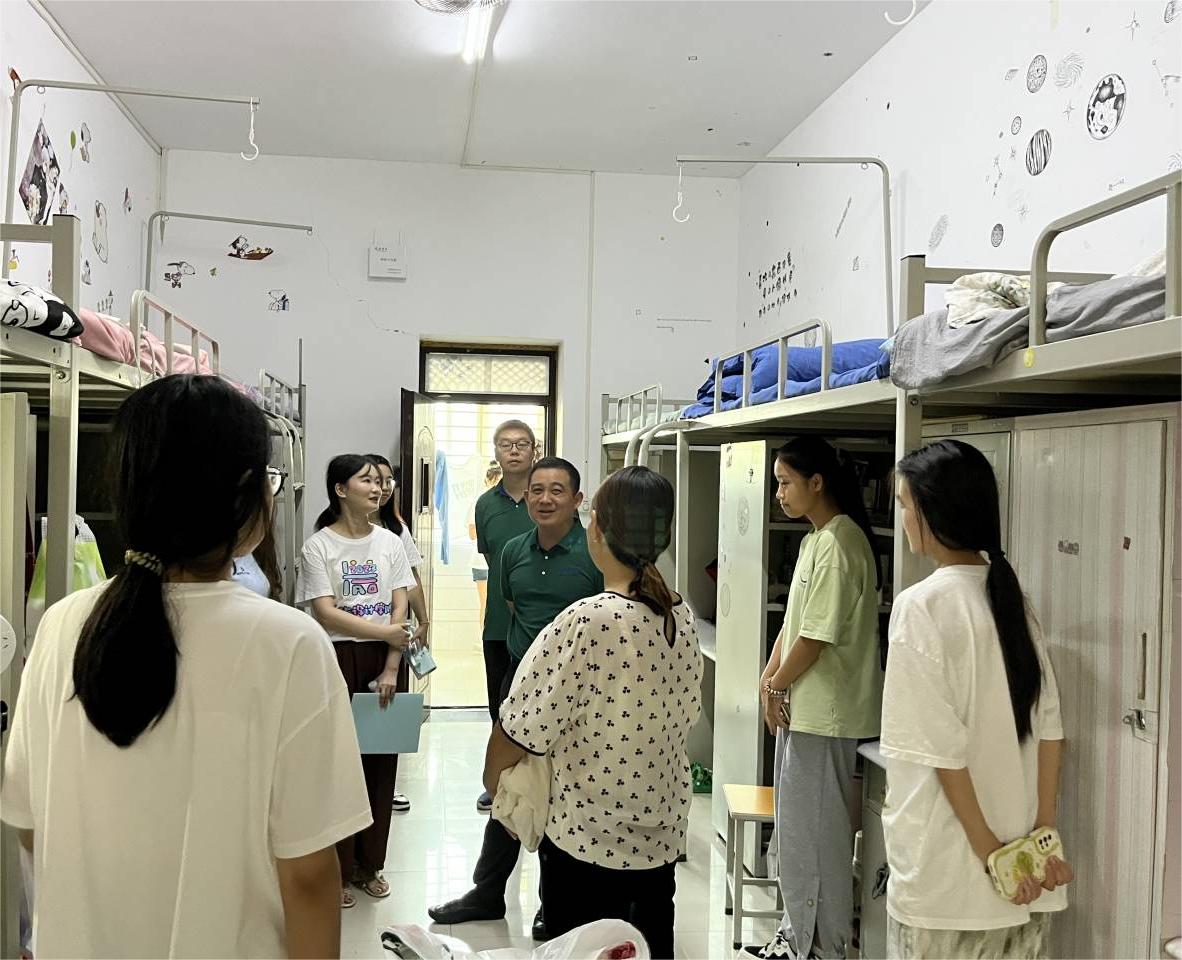社会科学学院:社会科学学院名誉院长、党总支书记胡志国、学工负责人陈苗苗和全体辅导员深入学生宿舍开展走访慰问活动。走访过程中,学院领导和辅导员耐心解答同学们的疑问,细心询问同学们的假期生活与新学期课程安排情况,提醒同学们要养成良好的生活习惯,自觉遵守寝室管理规定,合理安排作息。