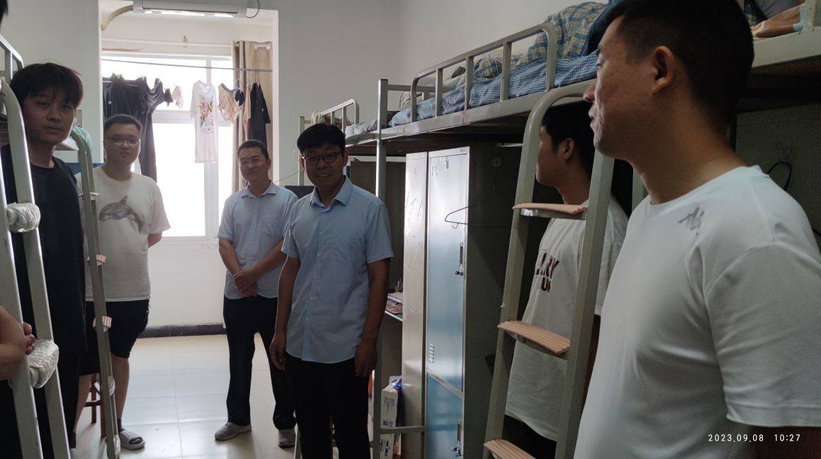 大数据与人工智能学院:大数据与人工智能学院院长邬长安、党总支书记毛凤翔、学工负责人鄢杰和全体辅导员深入学生宿舍开展走访活动。每到一处,他们与学生亲切交谈,希望大家课余时间加强锻炼、劳逸结合,养成良好的生活习惯;新学期、新面貌要努力学习、充分利用时间,把握学校提供的良好学习条件与氛围,不负秋日好时光。