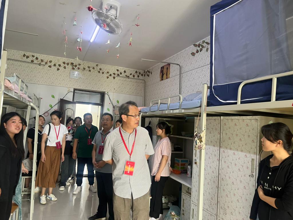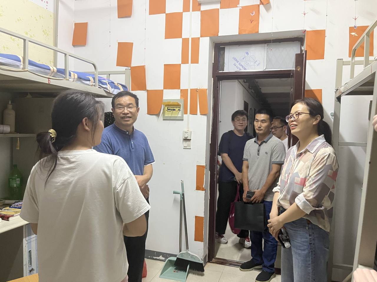 为切实做好新学期学生管理服务工作,学校各学院领导带队走访学生宿舍,看望慰问返校学生,实地了解学生在宿舍的学习、生活、心理等情况,为学生送去关心和问候。