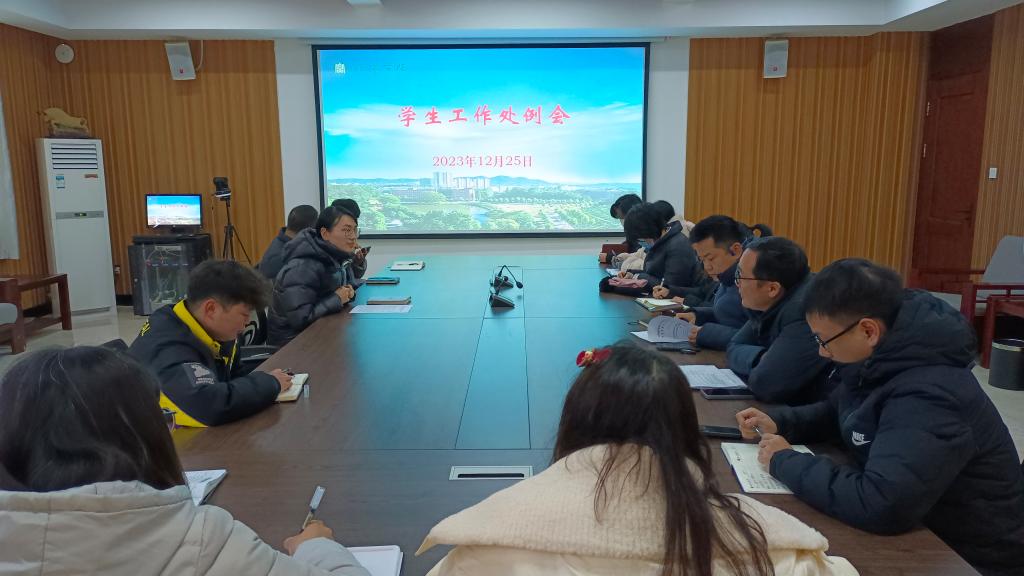 12月25日上午,学生处在综合楼1309会议室召开2023-2024学年第一学期期末学生工作例会,共同探讨期末学生工作。会议由学生处处长余婷婷主持,部门全体成员参加了会议。