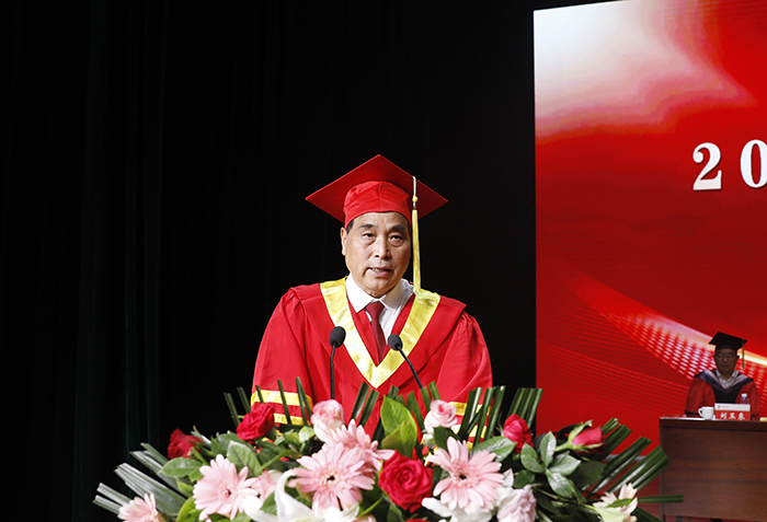 王北生深情回顾了同学们在学校度过的美好时光,与同学们共同见证了中国共产党成立100周年的历史荣光、全国脱贫攻坚战取得全面胜利、全国疫情防控取得重大决定性胜利、党的二十大胜利召开等多个历史性时刻和学校发展取得的新成就、同学们自身的成长发展,对即将奔赴祖国四面八方的毕业生们寄予了殷切希望。一要坚定理想信念,矢志报效祖国。习近平总书记指出:“志存高远方能登高望远,胸怀天下才可大展宏图。”要把握住时代的际遇与机缘,树立远大理想,厚植家国情怀,勇担时代重任,以无悔青春之我,担国家强盛之责,将人生理想融入国家事业的伟大洪流中,书写无愧于伟大新时代的青春篇章。二要坚持躬身实干,彰显青春本色。新征程是充满光荣和梦想的远征,没有捷径,唯有笃行实干、踏实前行。再好的规划,不去落实都是一纸空文;再好的想法,不脚踏实地去干都是好高骛远。要敢闯敢干有拼劲,善思善谋求突破,努力做到让理想在创业奋斗中升华,让青春在创新创造中闪光。三要坚守奋斗初心、勇于攻坚克难。在追求梦想的道路上,要始终怀揣着处事不惊的必胜信心,敢于迎接挑战、超越自我,不畏艰险、不惧困难,坚守信念、初心永存,用智慧和勇气开拓未知领域,用善良和真诚感染每一个人,用慷慨和奉献点亮前行之路。“求真创新 勤学笃行”的校训,是信院人的人生智慧和修养法则,请大家将校训精神融入血脉、激发心灵,以积极代替消极,用志气代替叹气,于平淡的生活中创造不平淡的人生。