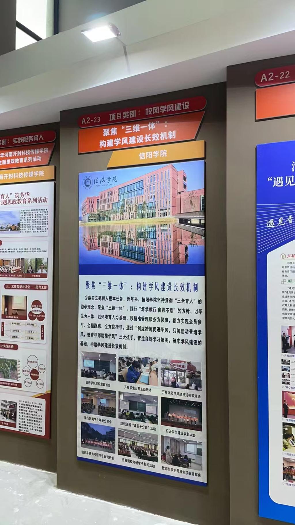此次学生工作成果现场展览设置在商丘师范学院应天艺术中心展览厅,共展出了来自全省63所高校的90项学生工作成果,项目涉及成长导向教育、奖励资助育人、就业创业教育、军训国防教育、实践服务育人、校风学风建设、心理健康教育、学工队伍建设、学生事务管理等九个方面。