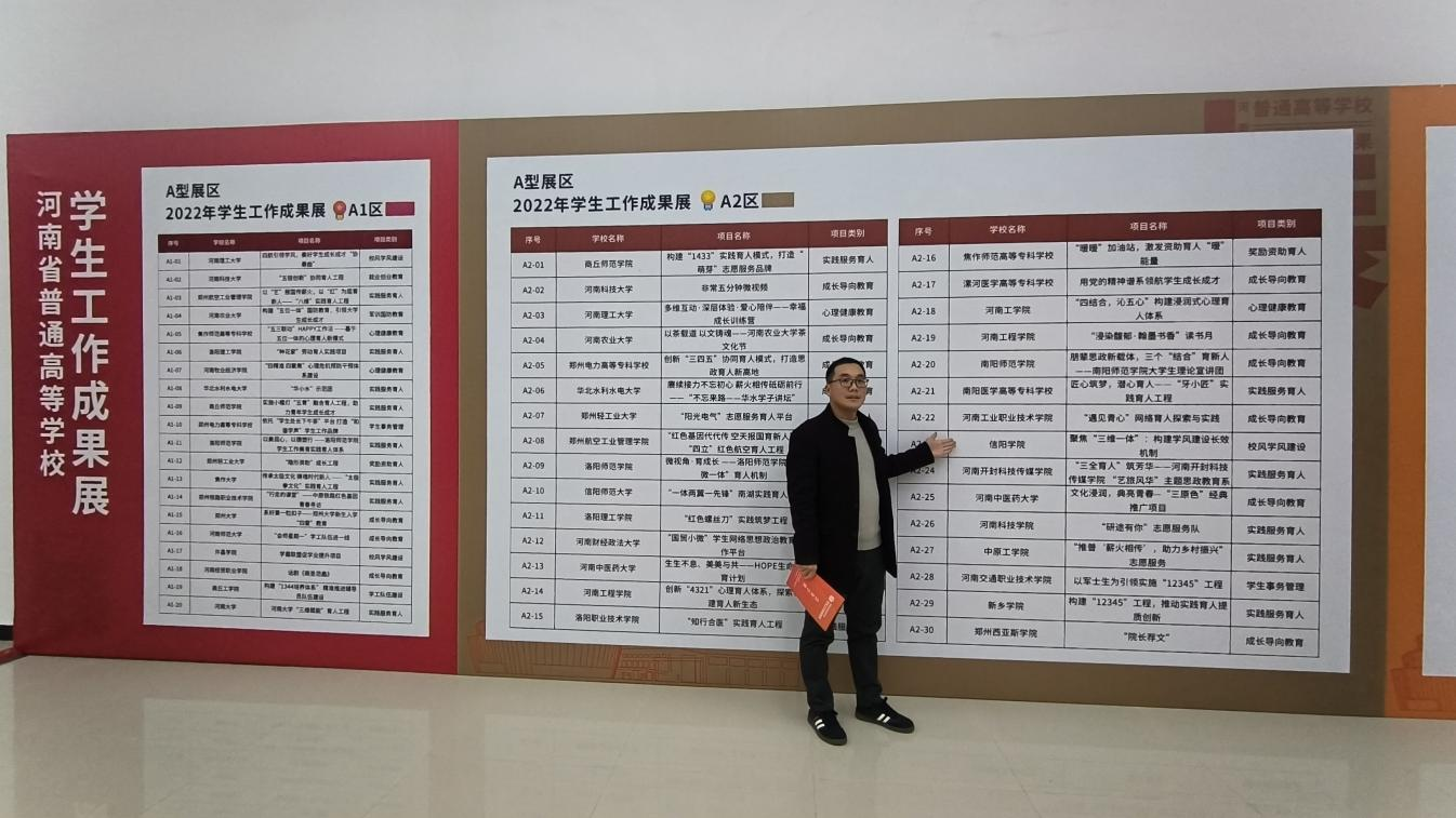11月26日,河南省普通高等学校第六届学生工作成果展演在商丘师范学院举行,全省170余所高校学生工作者代表参加了活动。河南省教育厅副厅长、省委教育工委委员吕冰出席并讲话,商丘市副市长王爱林致欢迎词。我校《聚焦“三维一体”:构建学风建设长效机制》荣获二等奖,学生处张猛参加成果展并代表学校领奖。