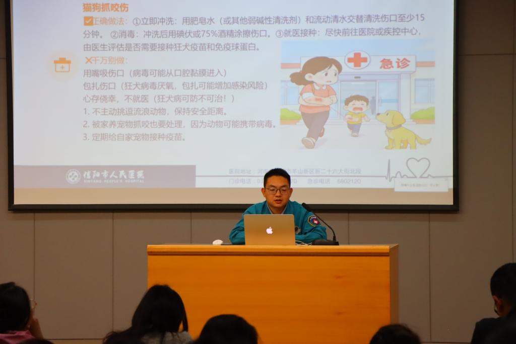 为进一步加强校园健康安全教育,提升师生应急救护能力与传染病防控意识,切实保障师生身体健康和生命安全。4月3日上午,我校邀请信阳市人民医院急诊科及疾控中心专家团队,分别于浉河校区图书馆101室和南湖校区学术报告厅开展了两场急救基础知识与春季传染病防治专题培训。各学院学工负责人、辅导员、宿管工作人员及学生代表参与了本次培训。