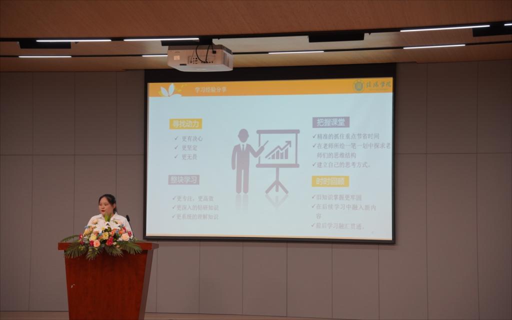 倪雯婧同学以《路虽远行则将至,事虽难作则必成》为主题,从进入大学以来学习规划、独立思考、专业学习、热爱读书等方面分享了自己的学习经历,她鼓励同学们要持之以恒,励志笃行,通过学习实践不断提升自身综合素质,让自己变得更加优秀。