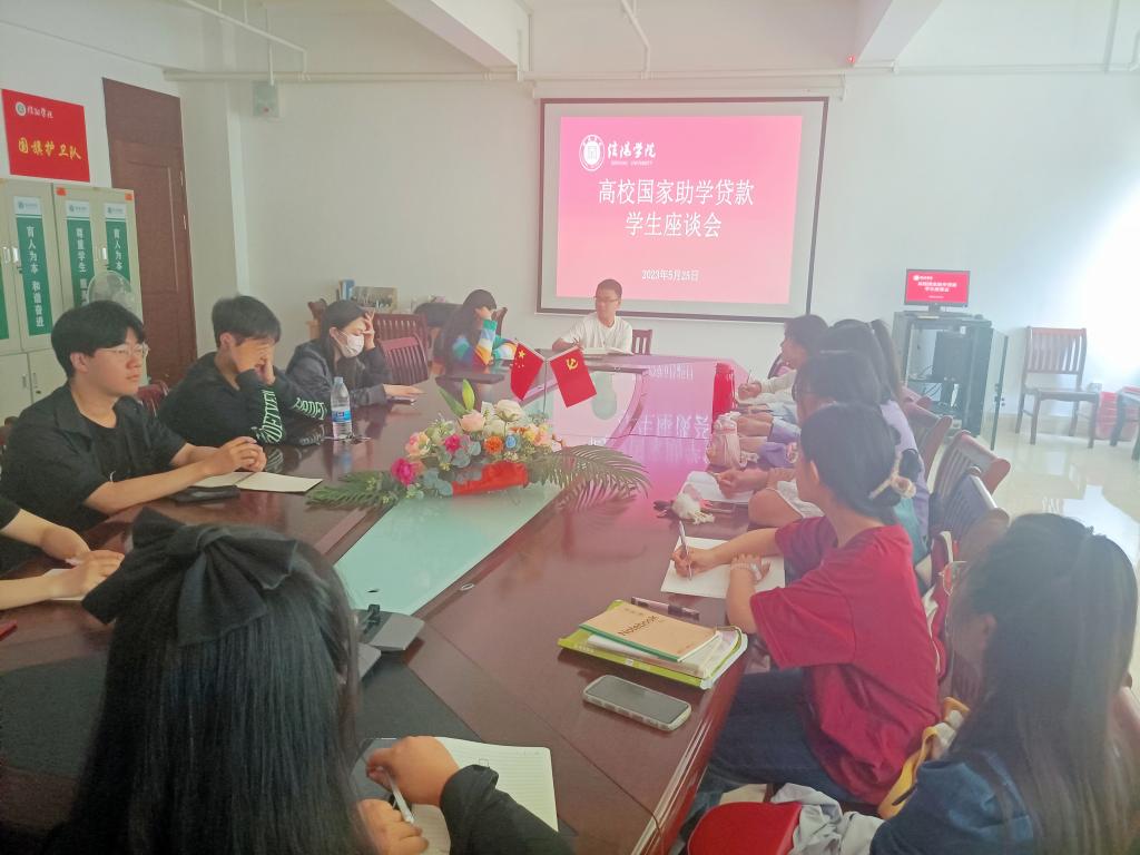 为提高大学生对国家助学贷款政策的了解,增强大学生的诚信意识和社会责任感,5月25日下午,我校在综合楼1302会议室召开国家助学贷款学生座谈会,2019-2022级学生代表参加了会议,会议由校学生资助中心张猛老师主持。
