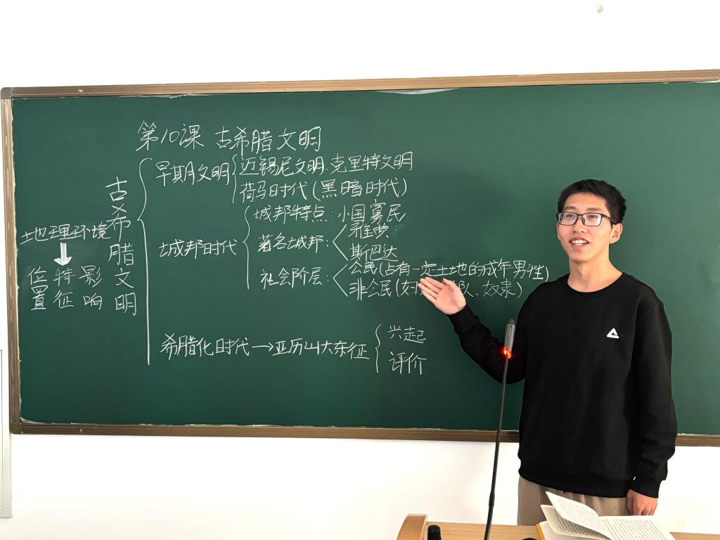 他担任2022级历史学本科1班班长,学年成绩排名名列前茅,综合测评高居班级榜首,主持河南省民办教育协会的调研课题,将豫南地区的根亲文化与民办高校育人实践相结合,展现出良好的学术视野和实践能力。他积极参与各类赛事活动,用实际行动诠释“奋斗的青春最美丽”,荣获河南省“奋进新征程 制作大先生”师德主题教育征文比赛河南省三等奖,信阳学院第十届大学生创新大赛的铜奖、读书分享会一等奖、PPT制作大赛二等奖、教师模拟风采大赛三等奖。他始终不忘回馈社会,立志将所学用于反哺农村。在职业规划大赛中,他以“乡村教育为人生导向”为题,荣获二等奖。除了组织文化活动外,他还积极参与志愿服务活动,如心理健康月心灵派对、2023级迎新活动、整理图书馆书籍等系列志愿服务。他还利用暑假时间回到家乡参加“返家乡”志愿服务活动,为家乡的发展贡献自己的力量。他深知,个人的成长离不开国家的支持与社会的帮助,因此,他更加珍惜每一次提升自己的机会,希望能将这份力量传递给更多需要的人。