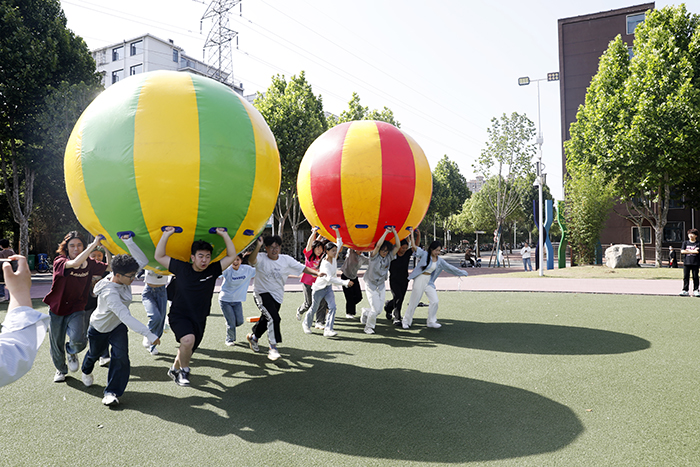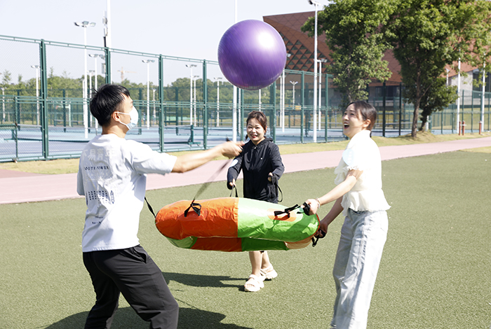 随后,第十五届心灵派对拉开帷幕。瑜伽球竞速、巨人脚步、重走长征路、袋鼠运瓜、龟兔赛跑、突破障碍、抖球、车轮滚滚等60余项心理素质拓展项目有序开展,精彩纷呈。