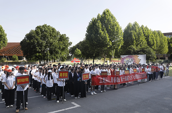 在师生热烈的掌声中,校党委书记褚金海宣布“五育润心,青春绽放”——第十四届“5·25”心理健康教育宣传月开幕!