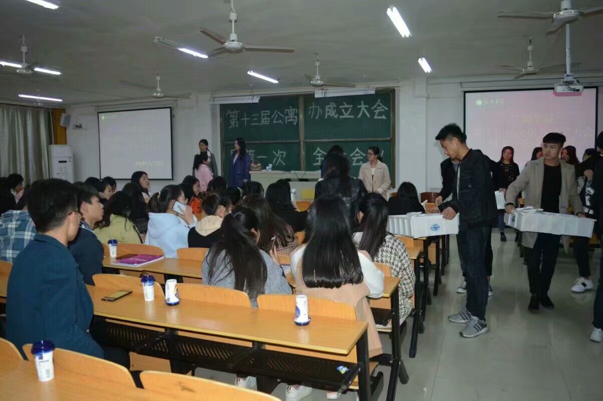 3月23日晚上在人文楼408举行了换届仪式。大会开始公寓办总负责人万老师发表了讲话,对于十二届公寓文化节所获得的成绩给予了肯定与认可,反映了存在的问题希望加以改正,在日后仍能够保持本真,处理好工作与学习的关系,同时公布了十三届公寓办负责人名单总负责人为王欣怡,剩余三个负责人分别为赵艳芳、赵乾、屈飒并期待下一届公寓办能够不忘初心,砥砺前行,将公寓文化不断地传递。