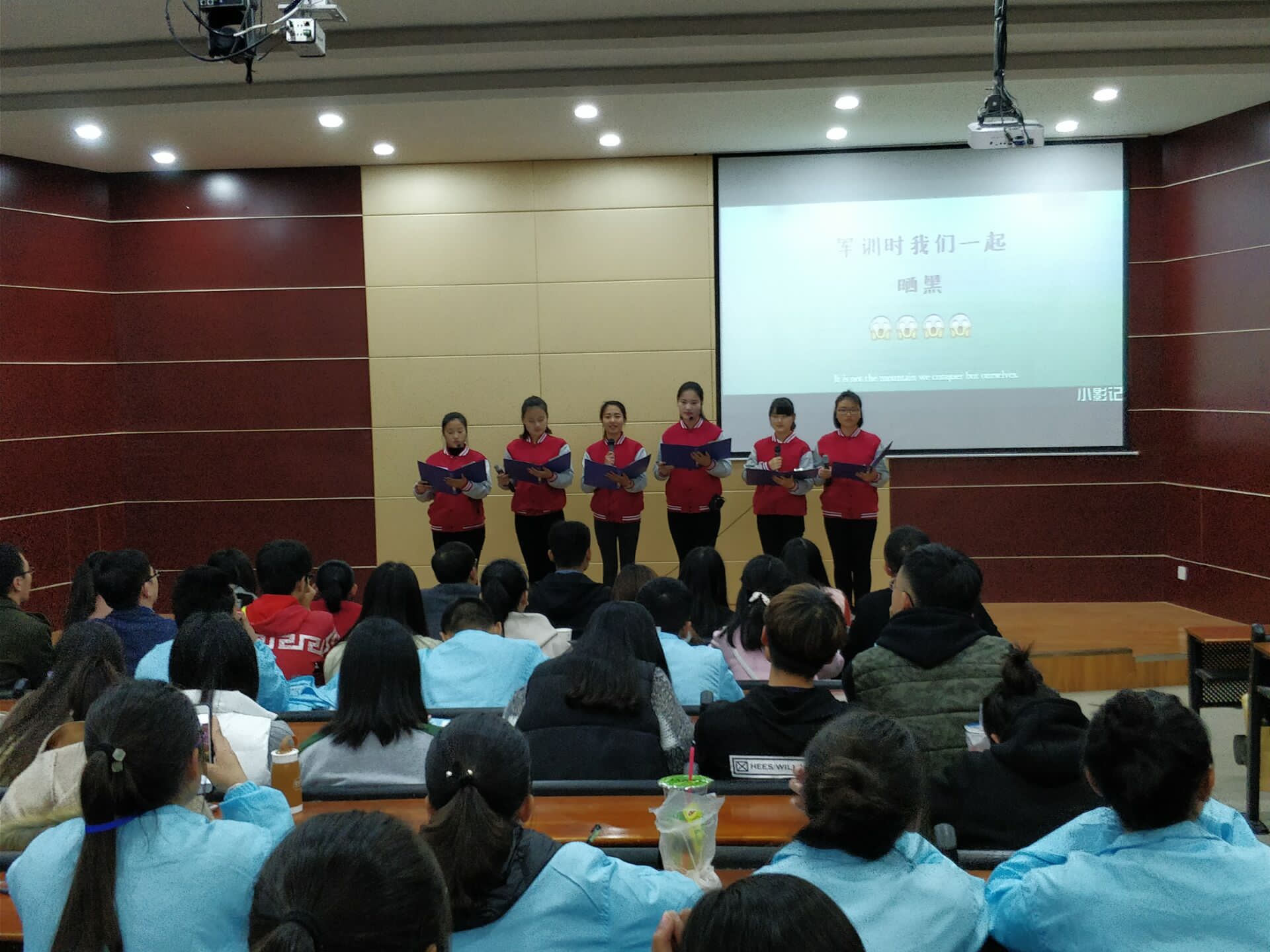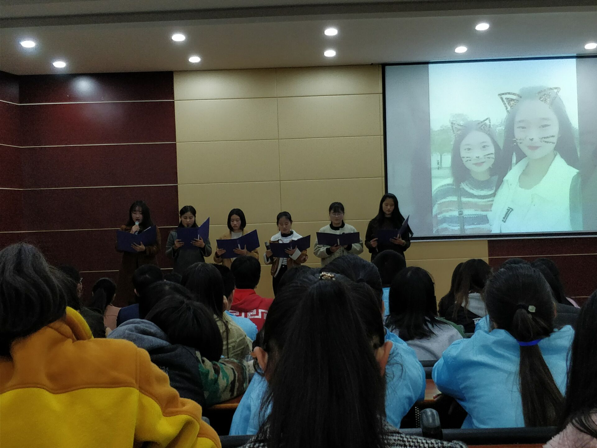 十一月十五日下午三时,在图书馆报告厅正式举办了公寓文化节朗诵比赛的初赛,莅临本次比赛的有各系辅导员和寝教楼管理中心的万圆圆老师。参与比赛的同学们以寝室为单位携带他们的ppt上台进行演讲。