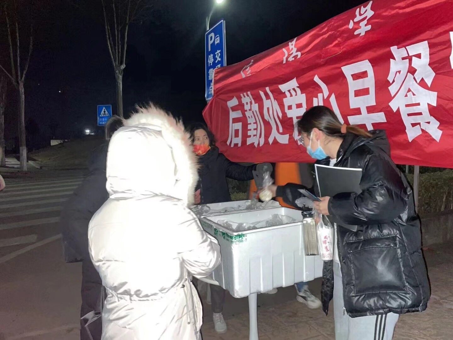 理工楼前还有学校餐厅为考研学子准备的爱心早餐,有八宝粥,肉包子,鸡蛋。为考研学子提供满满能量!