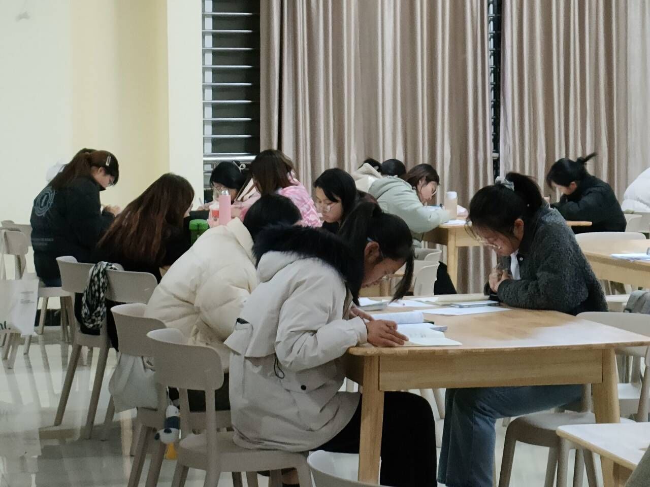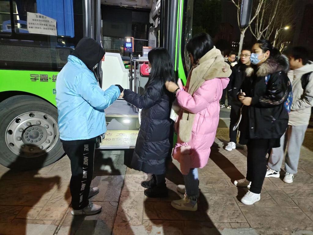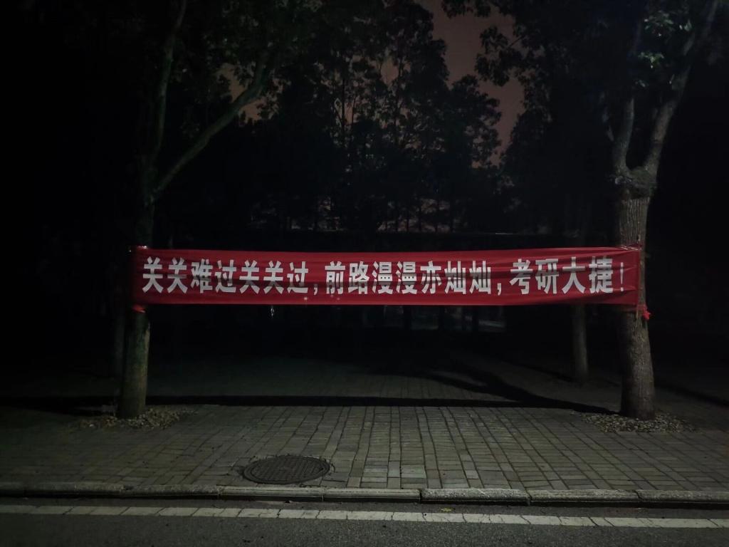 从理工楼到学校北门都有公寓办的干事们站在道路两旁,当考研车辆驶来时,他们为考研车辆内的考研学子们送上真挚且有力的祝福。