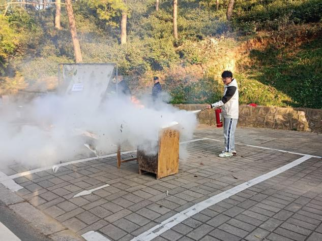 活动中,师生们首先在图书馆102会议室接受了消防知识培训,学习了如何正确使用灭火器和消防水带等消防器材。随后,师生们又进行了模拟生活场景灭火演练,包括宿舍违规电器引燃被褥燃烧、教室课桌书本燃烧、食堂油锅燃烧等多种情况的演练。